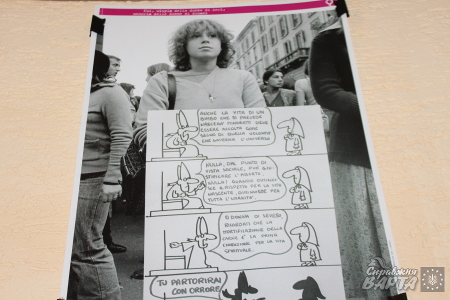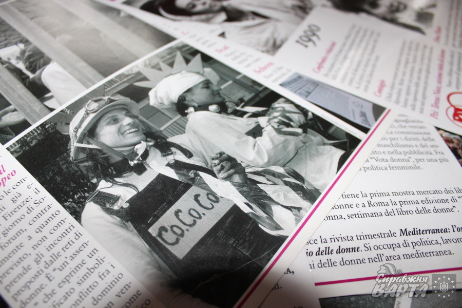 «Вони розповідають про те, як італійські жінки впродовж сорока років виборювали в суспільстві свої права, – розповіла Тетяна Ісаєва, директорка Центру гендерної культури, – це цікавий проект. Тому ми вирішили його показати. Я раніше розповідала про те, що в Україні немає традиції щоб жінки виходили на демонстрації та говорити про свої права. А в них є ця традиція. Бо кожного року жінки виходили і добивалися. Наприклад, цього року вони добиваються права на працю, іншого року – права на відпустку, а наступного – права на розлучення або політичних прав».