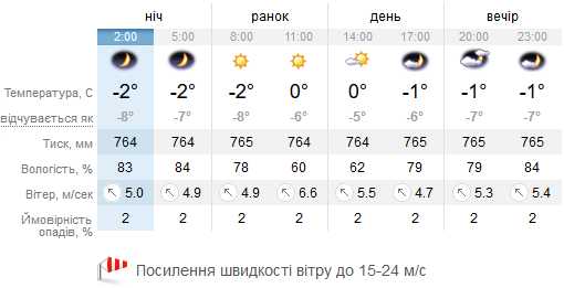 Прогноз погоди на 20 листопада 2016 року